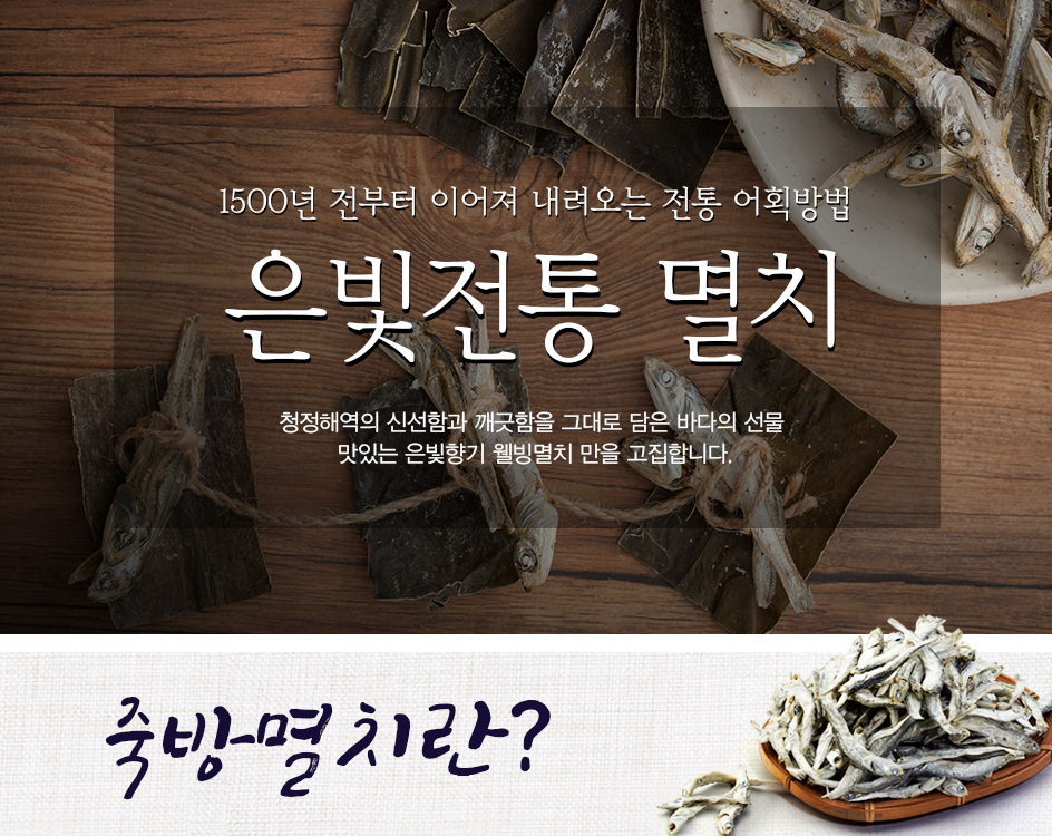 죽방렴어장에서 갓잡은 전통멸치를 정직한 어부의 마음으로 정성껏 자연그대로 신선함을 담은 건강하고 믿을 수 있는